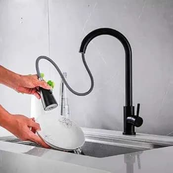 Featuring a convenient single-lever design, you can effortlessly control both water flow and temperature. The pull-out spout offers 360° rotation for all-around cleaning, making it easy to wash dishes, clean your sink, or even use in the bathroom.