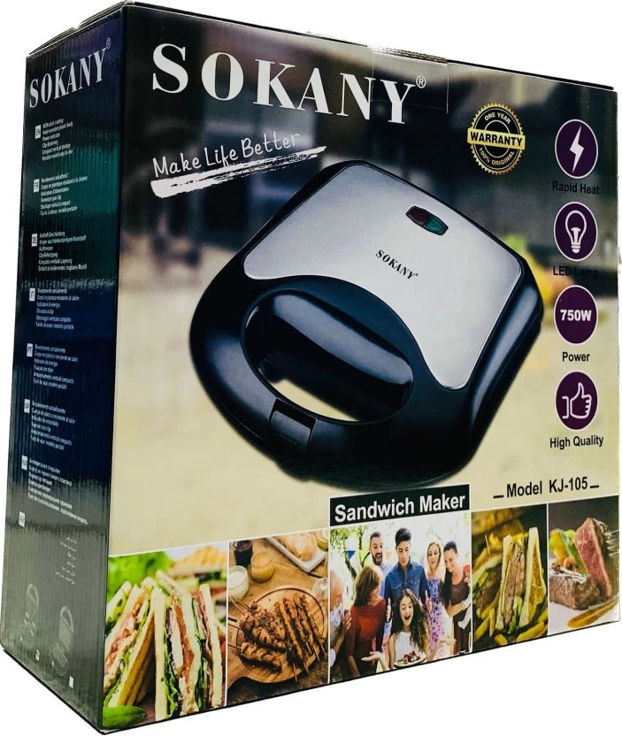 Sokany 750W Sandwich Maker – Model KJ-105 (Black/Grey)