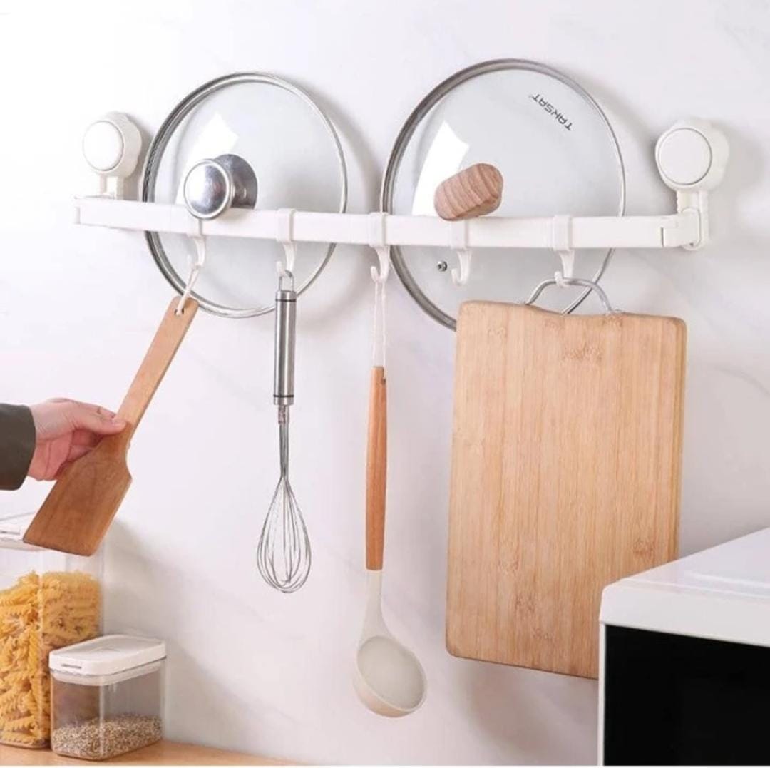 Sucker Hanging Rod with Hooks – Wall-Mounted, No Drilling Required